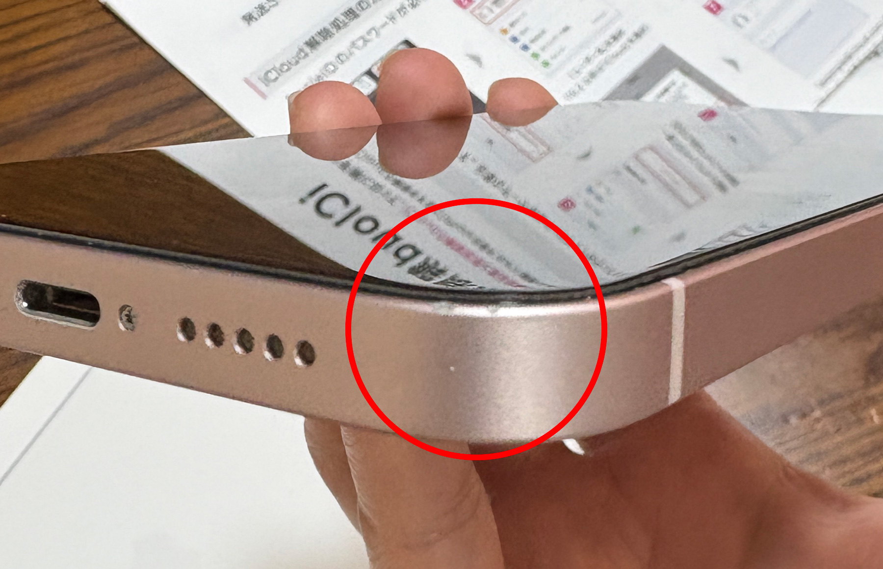 で、実際に私が2年使ったiPhoneの写真がこちらです。念の為その写真を撮影しておきました。(新しいiPhone16で早速)