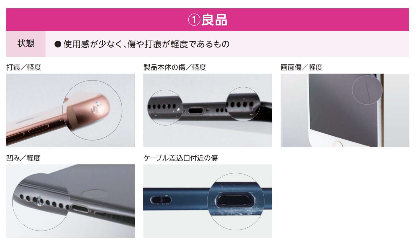傷の目安としては楽天が公式で例を出してくれているので、ここから確認できます。(PDF)