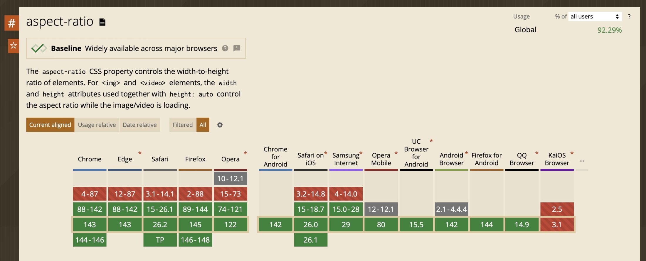 aspect-ratioは2025年時点で主要ブラウザはほぼ対応済み