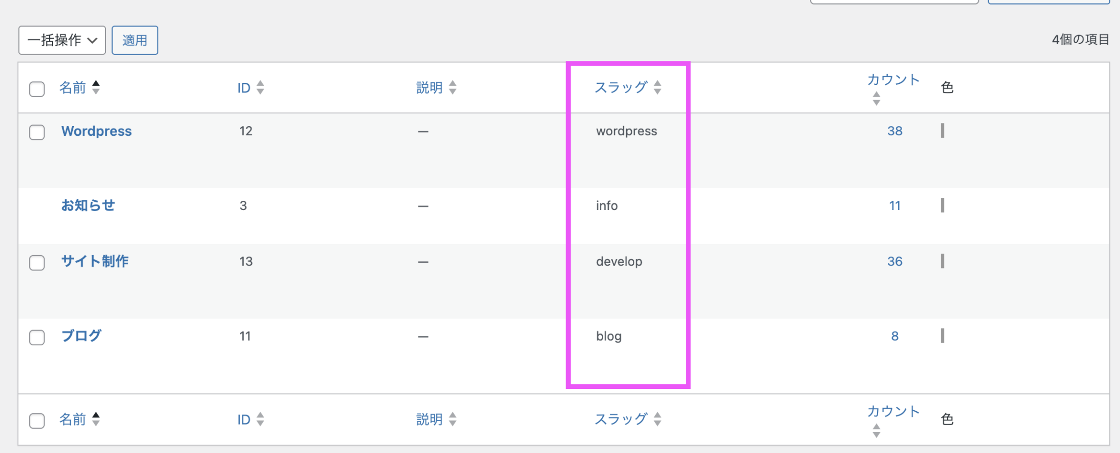 - カテゴリー名(スラッグ)を入れるとどのカテゴリーの記事なのか分かりやすいから